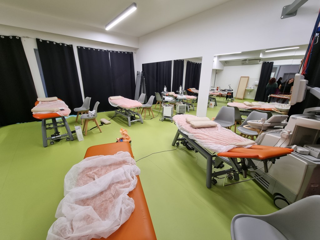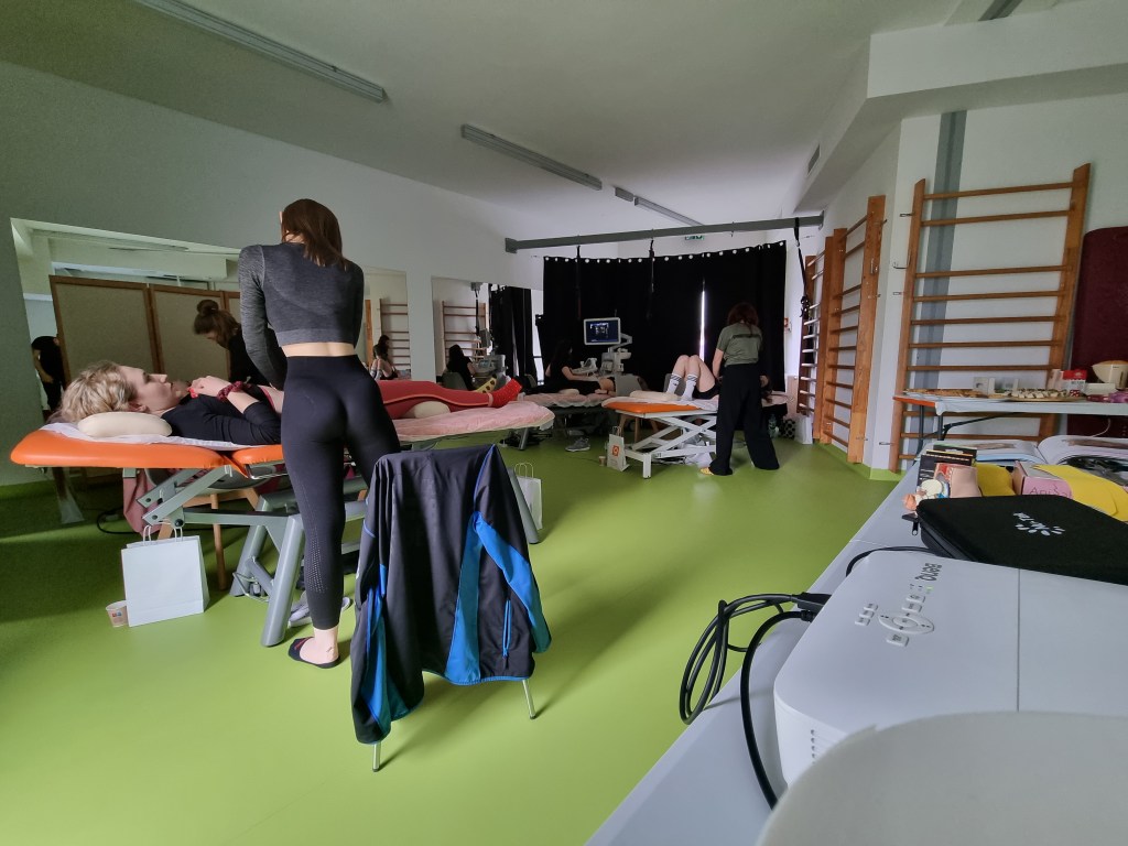 praktyka (terapia) – praca wisceralna: Klatka piersiowa i jej narządy, jama brzuszna, dno miednicy; praca mięśniowo-powięziowa w oparciu o EMG i USG, Tecaroterapia; praca z wykorzystaniem metod terapii manualnej (techniki stawowe i mięśniowe)